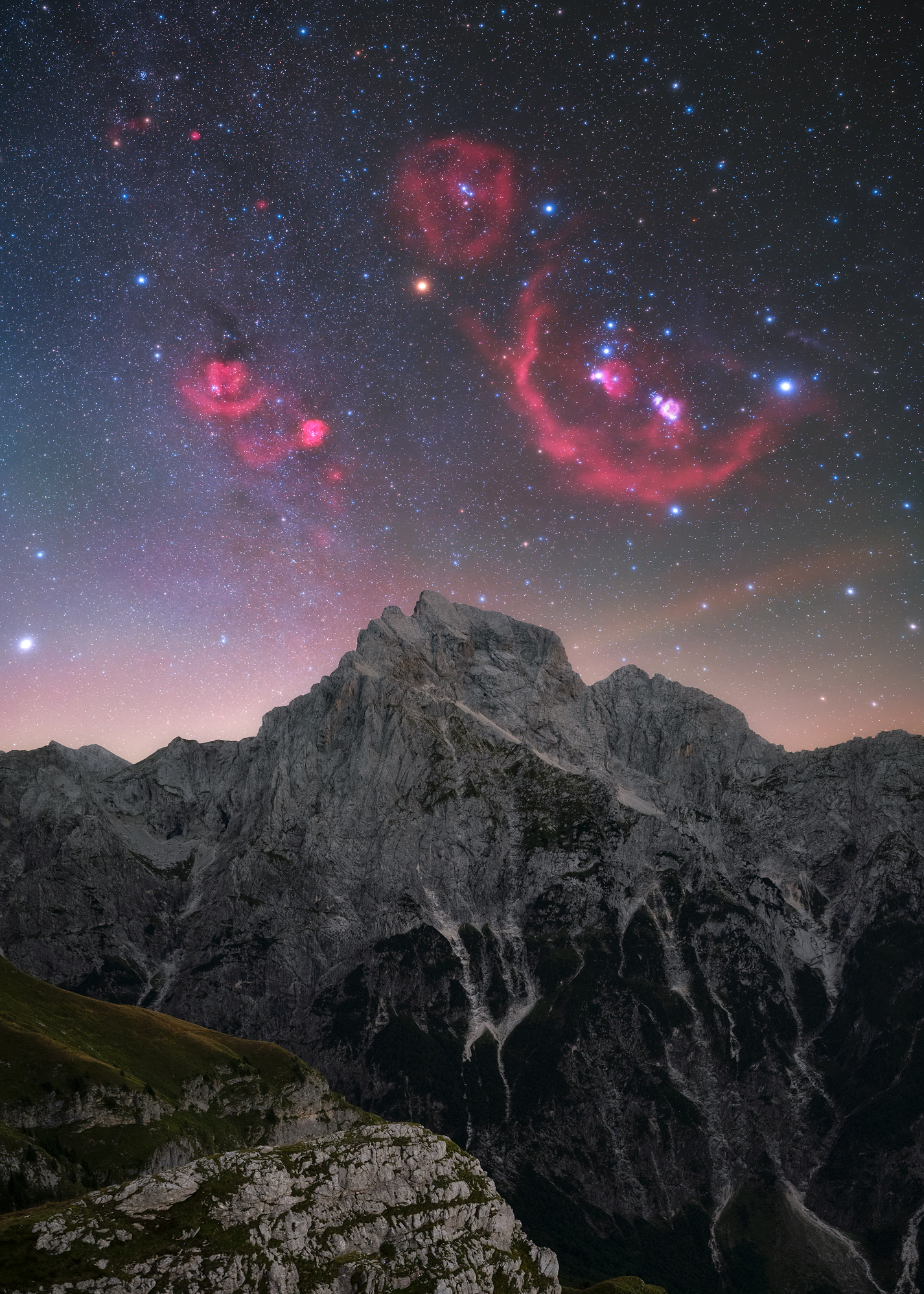 This time, I spent the night in the company of friends. We had truly excellent conditions, and for the first time this season, I managed to capture Orion in my lens. That’s why I decided to photograph it as it slowly rose into the heights above Mountain Jalovec.
